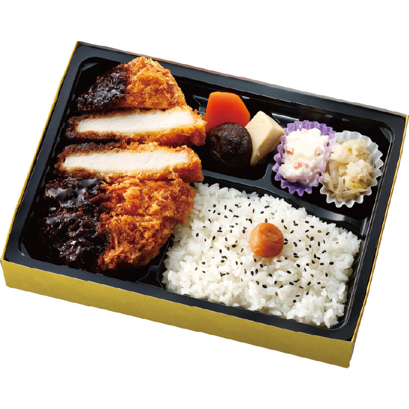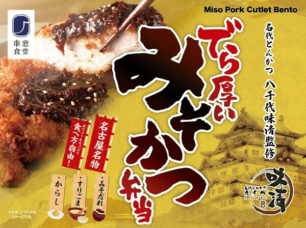 三元豚厚切りロースとんかつと、 名古屋の老舗洋食店「名代とんかつ八千代味清」が監修した 八丁味噌入り味噌だれが相性抜群な、名古屋名物「みそかつ」のお弁当です。価 格:1,280円(税込)