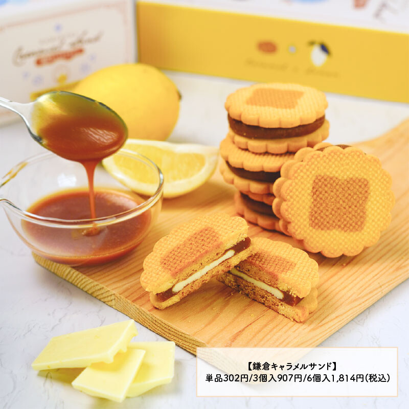 神奈川県産レモンピール入り特製キャラメルとホワイトチョコレートクリームを、紫陽花のかたちのサブレでサンド💕パッケージは「花寺」として知られる鎌倉・長谷寺様と共同でデザインしました😍