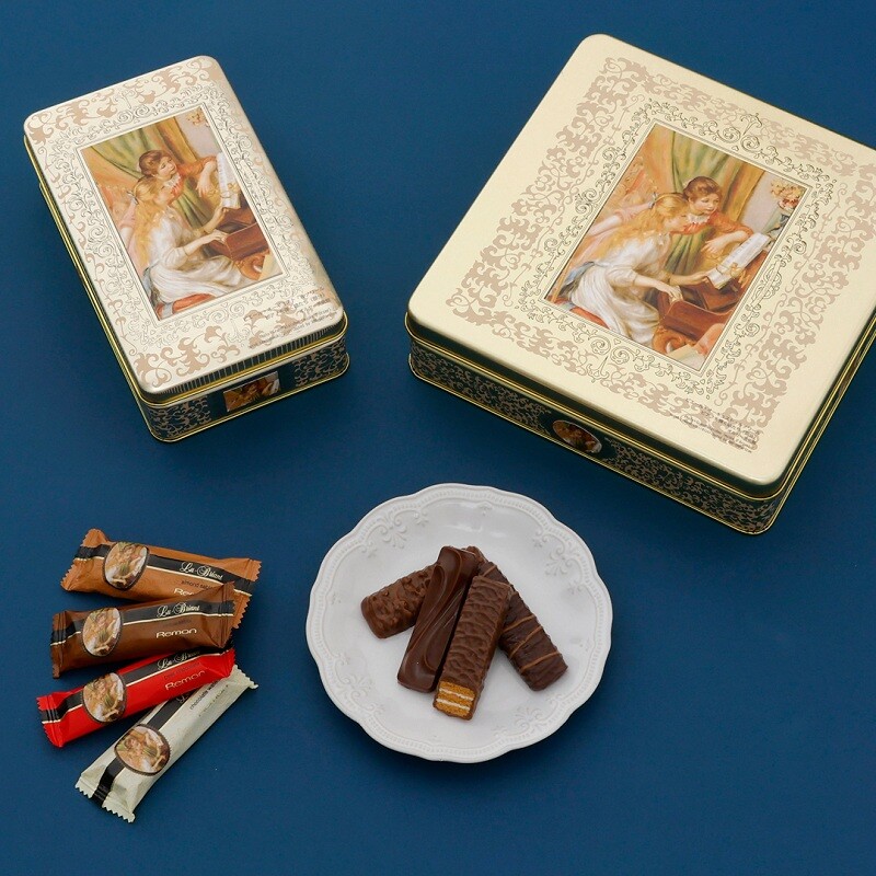 ルノワール作「ピアノを弾く娘たち」を施した限定パッケージの記念缶🎹