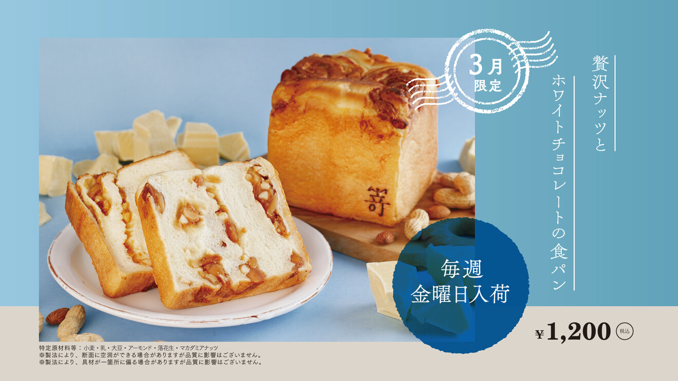 『贅沢ナッツとホワイトチョコレートの食パン』1,200円