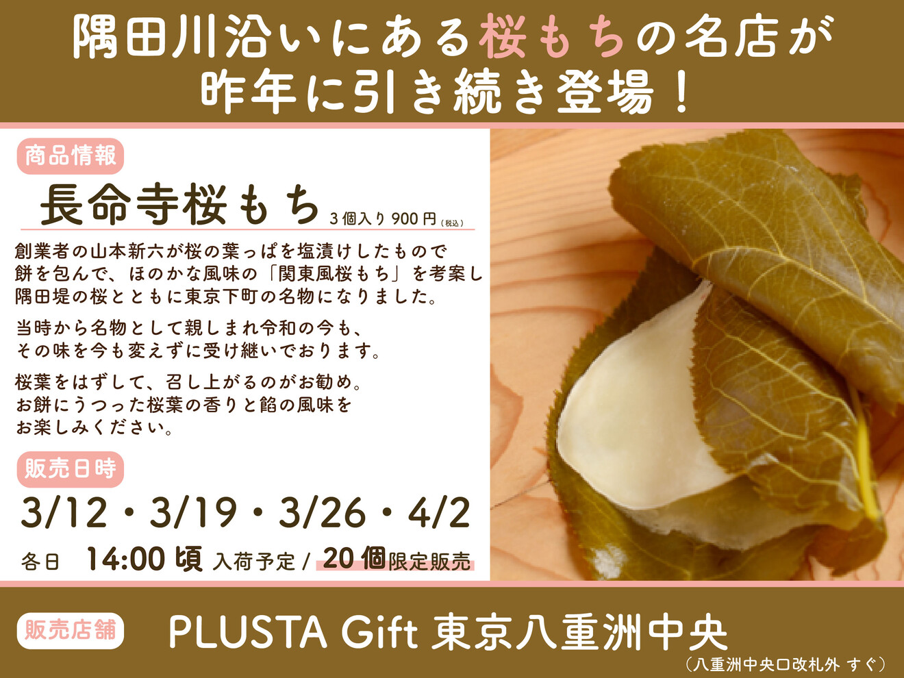 創業当時から受け継がれてきた「関東風桜もち」の味わいをぜひお楽しみください❣
