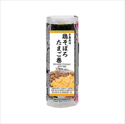 照焼のたれで味付けした鶏そぼろにたまごサラダを合わせて手巻寿司にしました。