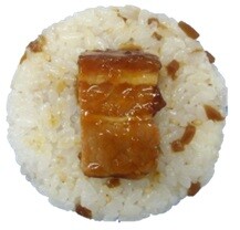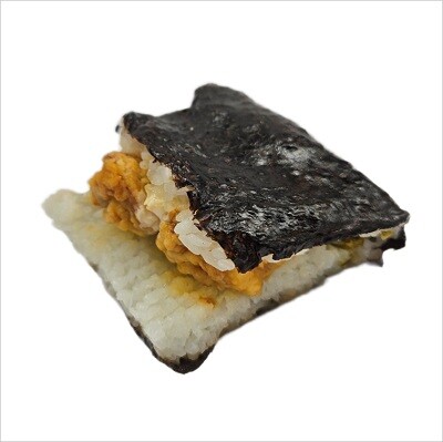 大分県の郷土料理「とり天」のおむすび。 たれとタルタルソースには大分県産のかぼすを配合しています。