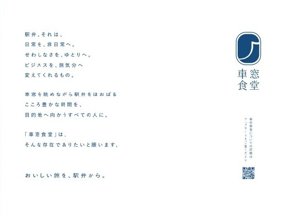当社の駅弁製造は日本食堂株式会社(食堂車のレストラン)をルーツに持ち、長らく多くのお客様の旅のお供として成長を続けてまいりました。2022年10月に"お客様の旅を豊かな時間にする"という想いのもと「車窓食堂」ブランドを発足し、今年で3周年を迎えます。この度、よりお客様に愛されるブランドになるために、私たちが駅弁を通して提供すべきことは何か、を改めて考え、食事としての美味しさだけではなく、"東海道新幹線でのときめく体験として感じていただきたい" との想いに至りました。旅行中の心に残る美味しい思い出に、出張中のゆとりのひと時に、日本の文化体験になるような、更なる「こころ豊かな時間を提供」いたします。これまでの駅弁づくりのノウハウを生かし、より愛されるブランドづくりのため、ブランドストーリーを見直し、商品づくりの3つのこだわりを約束します。
