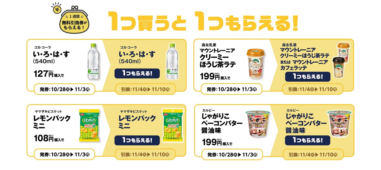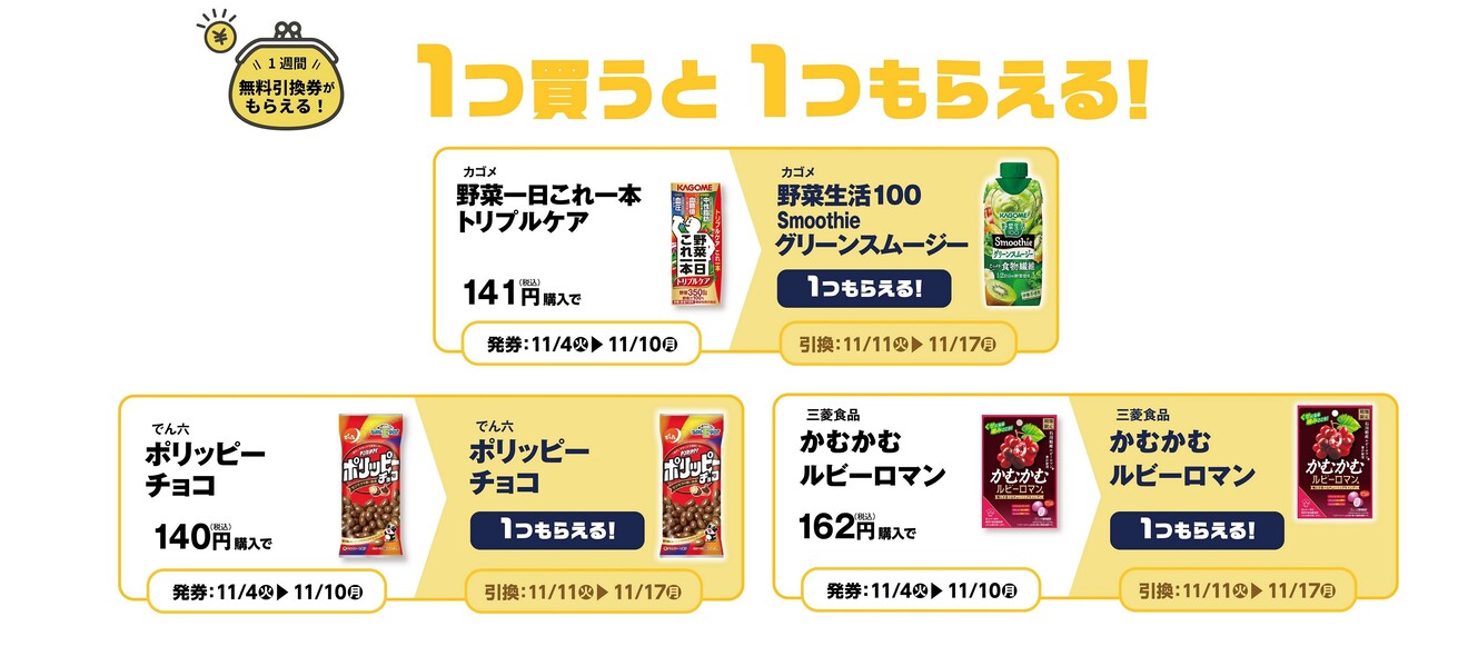 対象商品がおトクな価格に!1つ買うと1つもらえる「レシートクーポン」、