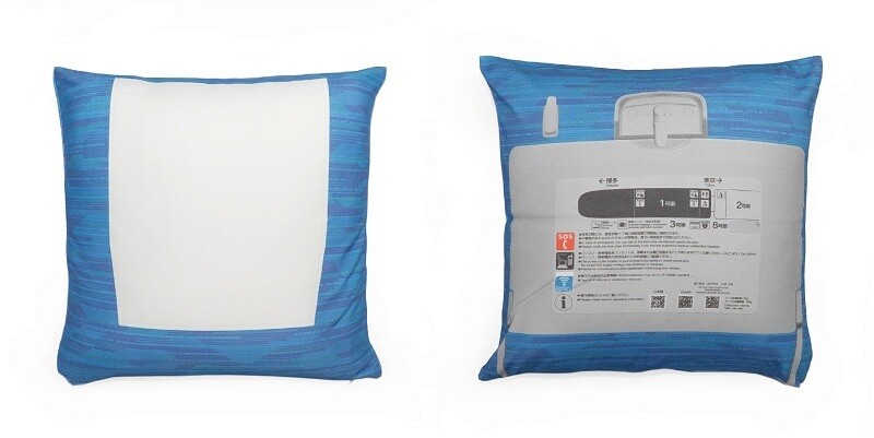 N700S普通席のモケット柄を再現し、お部屋でも新幹線普通席の雰囲気を存分に楽しめます。クッションカバーと枕カバー表面にはヘッドカバーをプリントし、裏面には1号車普通席テーブルの裏面をイメージしたプリントを施しました。細部までこだわった仕上りです。