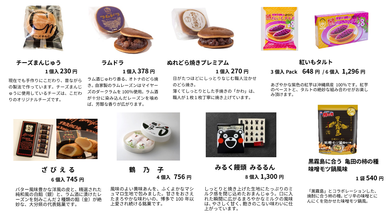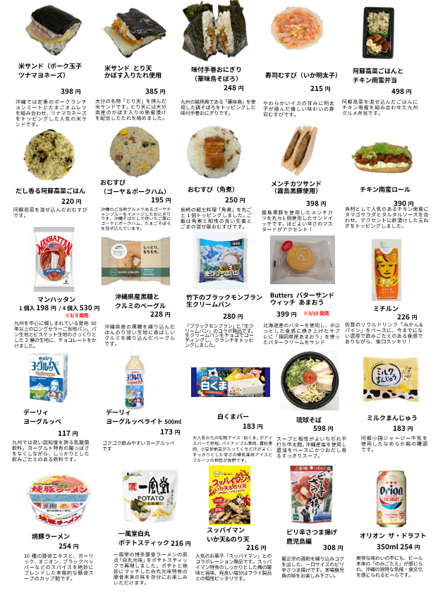 - 九州・沖縄にちなんだ商品が多数登場!(商品一例)