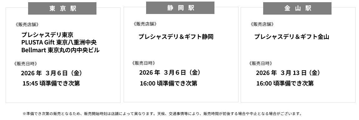 【開催場所】:東京駅~新大阪駅の「プラスタ」「ベルマートキヨスク」「グランドキヨスク」「ギフトキヨスク」「キヨスク」「プレシャスデリ」「プレシャスデリ&ギフト」「デリカステーション」等
