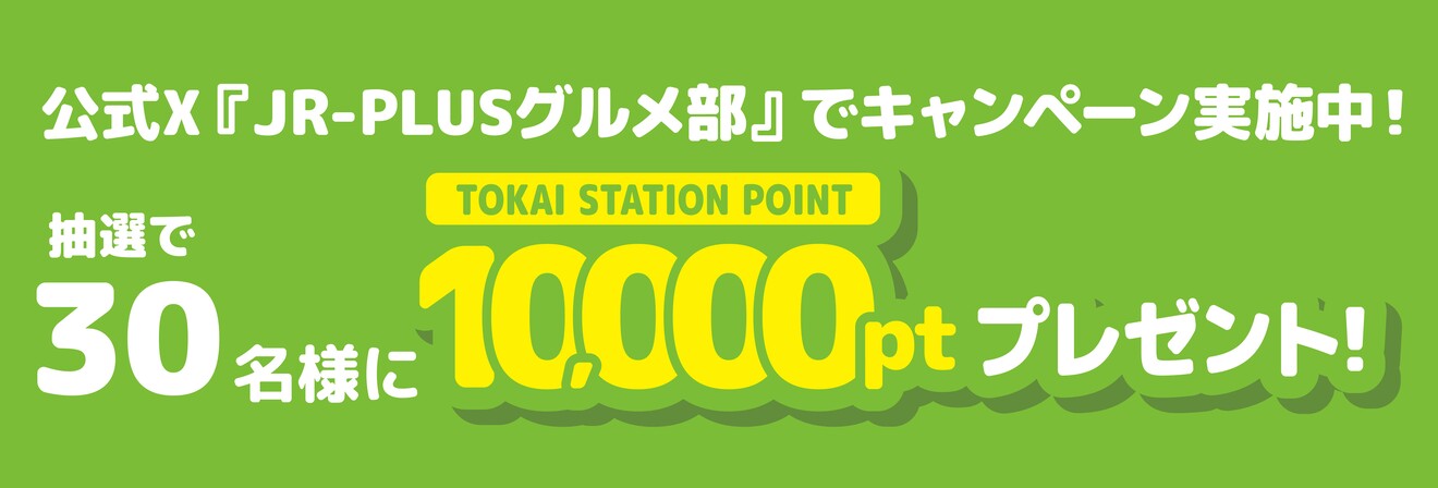 当社公式X「 JR-PLUSグルメ部」にて、抽選で30名様にTOKAI STATION POINT 10,000ptが当たるキャンペーンを実施いたします。