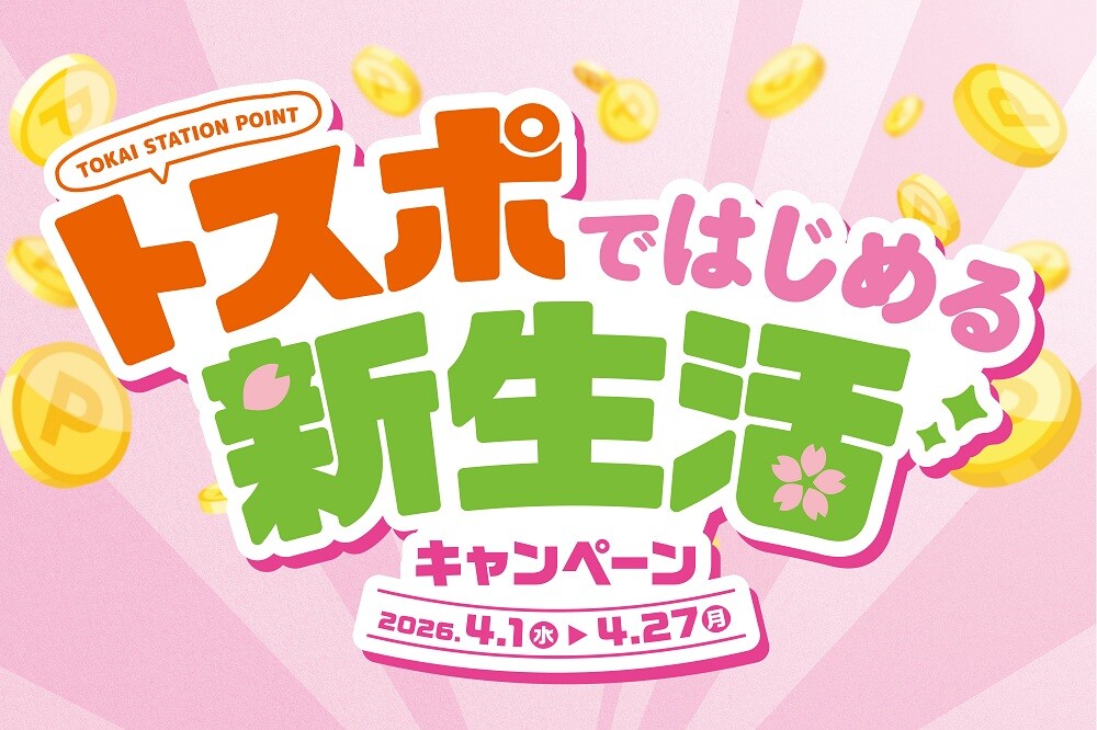 「トスポで始める新生活応援キャンペーン」を2026年4月1日(水)~4月27日(月)に開催いたします。本キャンペーンでは、『TOKAI STATION POINTアプリ』をご利用のお客様へおトクなキャンペーンを多数ご用意しております。