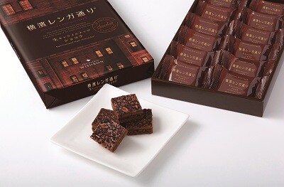 異国情緒たっぷりの街、横濱発祥のレンガに見立てて焼き上げたロングセラー。アーモンドの食感と口の中にとろける生キャラメルの風味が癖になる絶品のスイーツ。